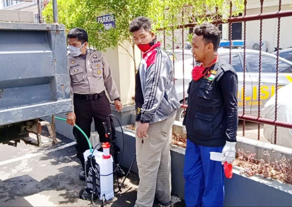 Polres Gowa bersama instansi terkait di Kabupaten Gowa seperti TNI, PMI, KNPI, HMI, Satpol PP, Dinkes serta elemen masyarakat lainnya pada Selasa (31/03/2020) secara serentak melaksanakan penyemprotan massal mencegah virus Corona atau Covid-19.
