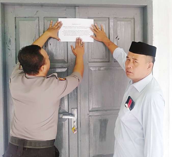 Hindari Warga Berkumpul, Kades Onto Bersama Bhabinkamtibmas Tutup Gedung Olah Raga