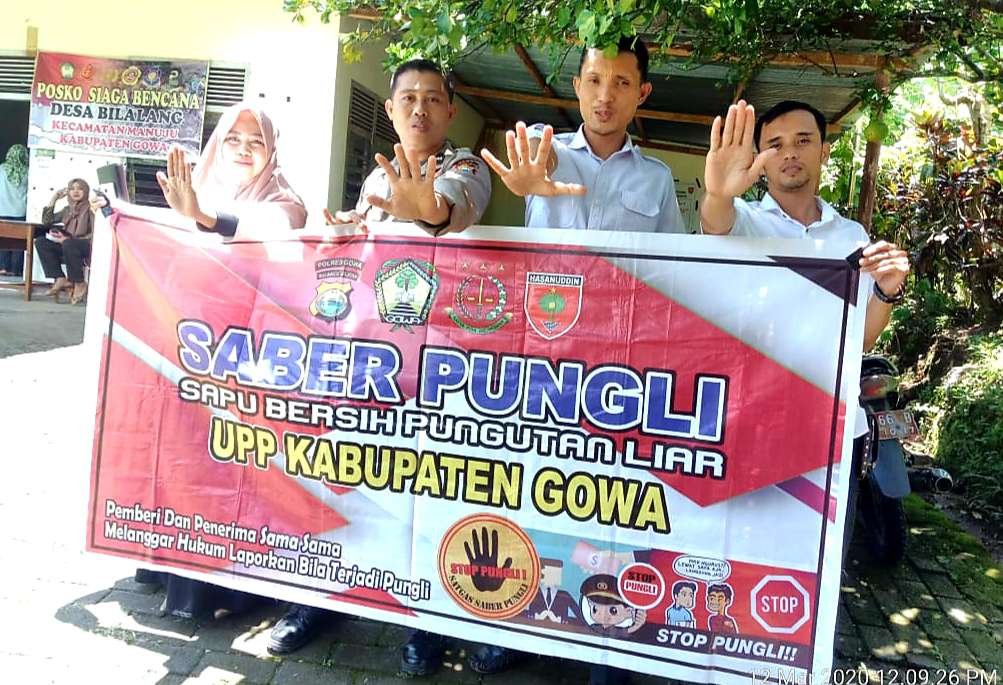 Pada Senin (16/03/2020) pukul 11.00 Wita, Bhabinkamtibmas Desa Bilalang, Polsek Manuju, Polres Gowa, Aipda Andi Slamet melakukan sosialisasi dan penyuluhan Saber Pungli kepada warga Desa Bilalang
