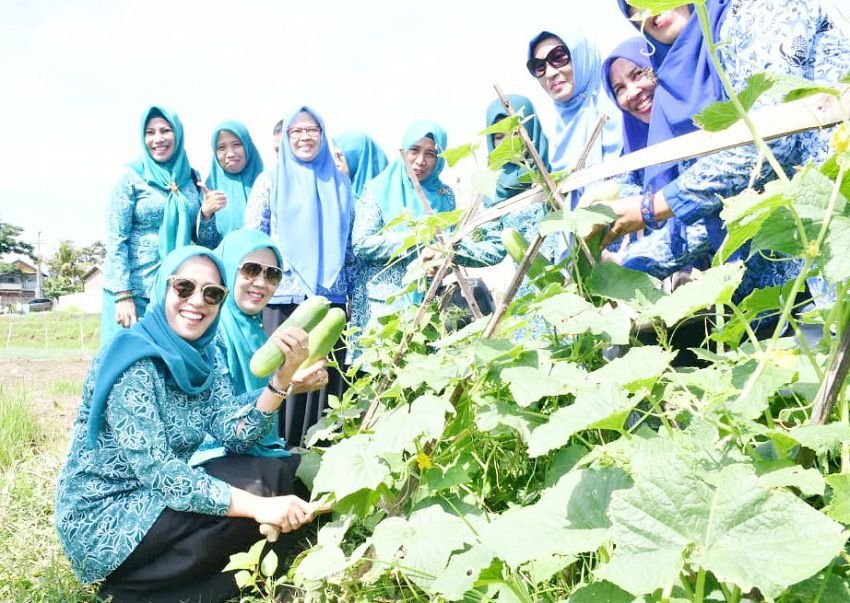 Tim Penggerak PKK Kabupaten Sinjai bersama Dinas Tanaman Pangan Hortikultura dan Perkebunan (TPHP) Sinjai melaksanakan panen perdana berbagai jenis sayuran dan buah-buahan di halaman belakang Kantor Balai Penyuluhan Pertanian (BPP) Kelurahan Bongki, Kecamatan Sinjai Utara, Senin (17/02/2020).