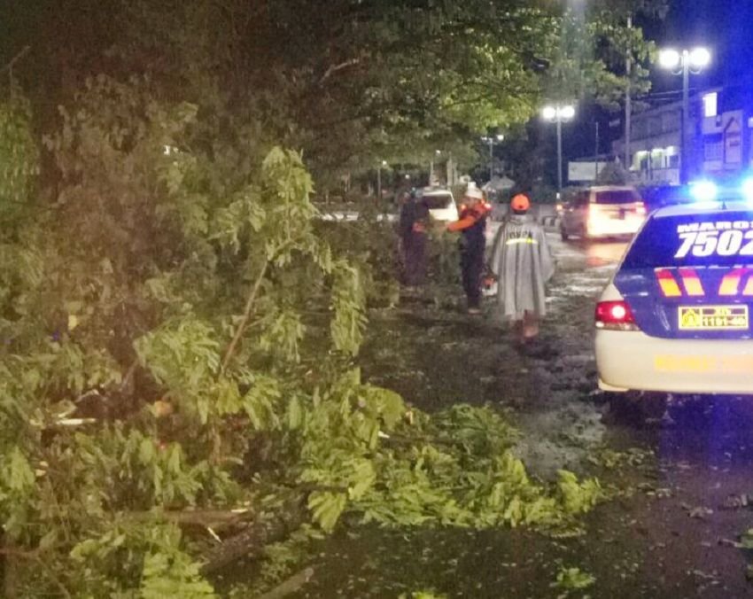 Diduga akibat hujan deras mengguyur disertai angin kencang yang melanda wilayah Kabupaten Maros pada Minggu (16/02/2020) malam sekitar pukul 22.45 Wita, sebuah pohon tumbang di depan kantor PT Telkom Jln Jenderal Sudirman Kelurahan Bajubodoa, Kecamatan Turikale, Kabupaten Maros.
