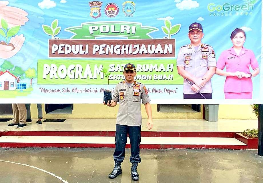 Guna mendukung kegiatan Program "Polri Peduli Penghijauan" Polres Gowa kini ikut berpartisipasi dalam kegiatan yang diinisiasi langsung oleh Kapolres Gowa AKBP Boy FS Samola, SIK, MH dengan menyusun program satu Rumah satu Pohon Buah.