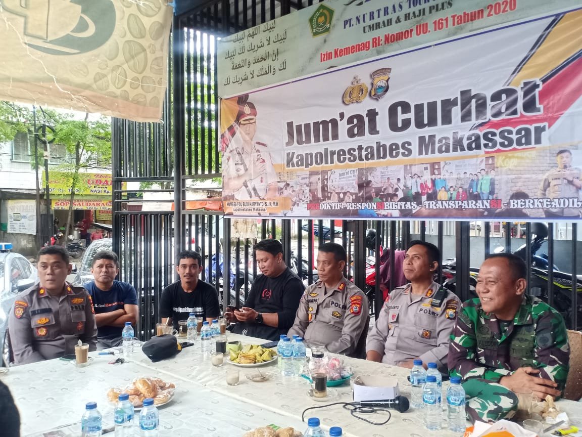 Komandan Rayon Militer (Danramil) 1408-06 Mamajang menghadiri kegiatan Jumat Curhat di wilayah binaannya. Kegiatan tersebut dilaksanakan di Warung kopi (Warkop) Papa O Jalan Cendrawasih, Kecamatan Mamajang, Kota Makassar, Jumat (17/02/2023) pagi.