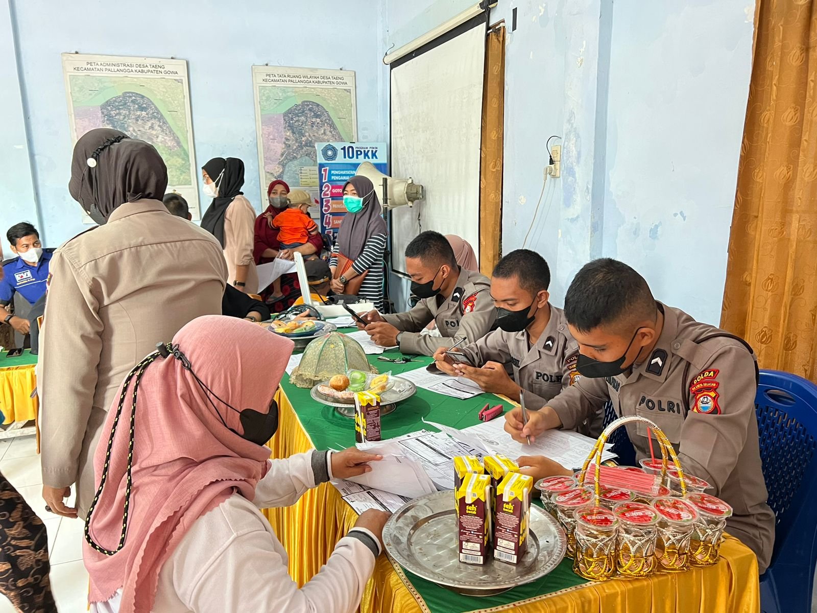 Polres Gowa pagi ini kembali melaksanakan kegiatan Vaksinasi Covid 19 secara massal yang dilaksanakan di Kantor Desa Taeng dan dipimpin oleh Kabag Ren Polres Gowa Kompol H. Mas’ud, SH. Rabu (23/03/22).