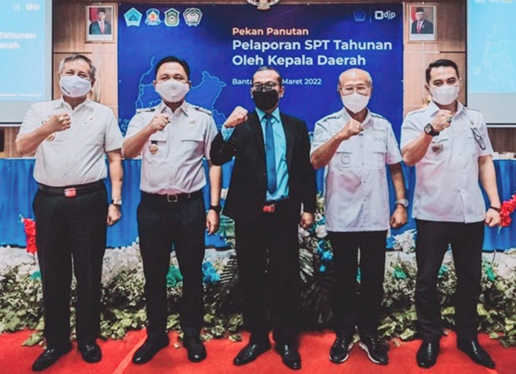 Bupati Bantaeng Ilhamsyah Azikin, Bupati Jeneponto Iksan Iskandar, Bupati Takalar diwakili Staf Ahli Bidang Pemerintahan, Hukum dan HAM, Budiar Rosal Saleh, dan Bupati Gowa diwakili Kepala Bapenda Ismail Majid, menyampaikan Laporan SPT Tahunan di Kantor Pelayanan Pajak (KPP) Pratama Bantaeng, Rabu, 23 Maret 2022.