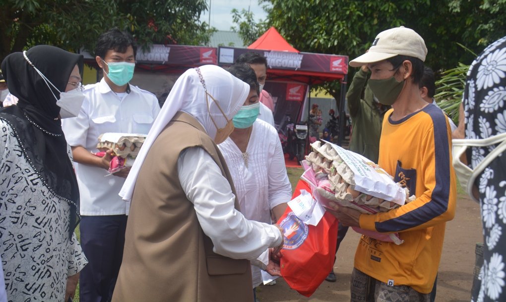 Ketua Forum Multisektor Eliminasi Tuberculosis (TBC) Kota Makassar, Hj. Indira Jusuf Ismail,SE, yang juga istri Walikota Makassar, menyerahkan bantuan dari Badan Amil Zakat Nasional (BAZNAS) Kota Makassar.