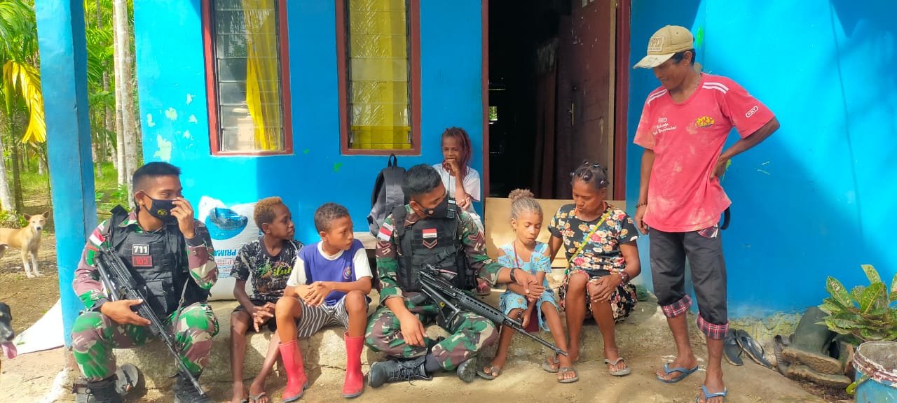 Sebagai sarana mempererat tali silaturahmi dengan masyarakat Pos Kaliasin Satgas Pamtas RI-PNG Yonif 711/Rks anjangsana ke rumah-rumah warga binaan di kampung Kibay Kecamatan Arso Timur Keerom, Papua.