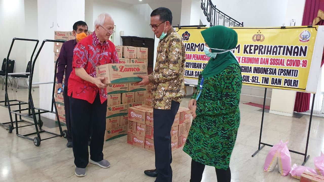 Paguyuban Sosial Marga Tionghoa Indonesia (PSMTI) Sulsel membantu 1.000 paket untuk penanggulangan dampak ekonomi dan sosial akibat wabah Corona.