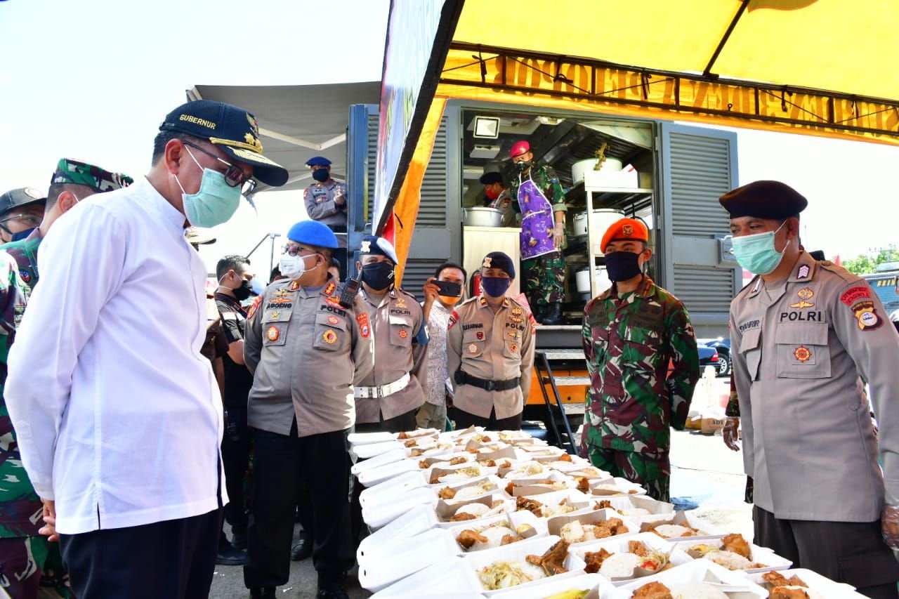Pemerintah Provinsi (Pemprov) Sulsel bersama TNI dan Polri, terlihat semakin kompak menangani warga terdampak Covid-19. Salah satunya, menyediakan makanan secara gratis.