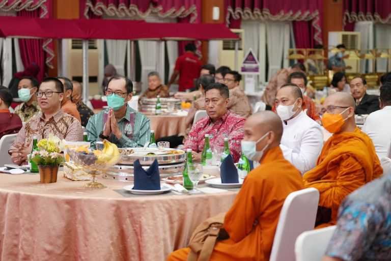Gubernur Sulawesi Selatan, Andi sudirman Sulaiman melakukan silaturahmi bersama para pengurus Persatuan Umat Buddha Indonesia (Permabudhi) di Rujab, Minggu (22/5/2022) malam.