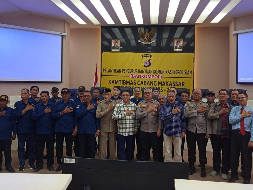 SOROTMAKASSAR -- MAKASSAR, Pelantikan Pengurus Bantuan Komunikasi Kepolisian (Bankompol) Kamtibmas Cabang Kota Makassar resmi digelar di Aula Sipakatau, Jalan Balai Kota Makassar, Sabtu (29/11/2025). Kegiatan ini menjadi momentum penting bagi Bankompol Makassar dalam memperkuat peran strategisnya sebagai mitra pemerintah dan kepolisian dalam menjaga keamanan dan ketertiban masyarakat.