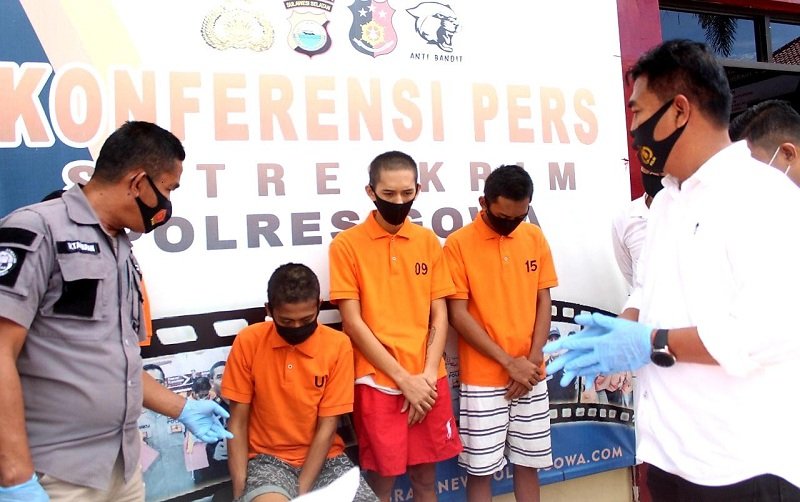 "Akibat perbuatannya, para pelaku dijerat dengan Pasal 338 dan atau Pasal 170 Ayat (2) ke -2e dan 3e KUHP Jo Pasal 55, 56 KUHP dengan ancaman hukuman maksimal 15 tahun penjara," ungkap Kasat Reskrim Polres Gowa AKP Jufri Natsir saat merilis kasus di hadapan awak media di Polres Gowa.
