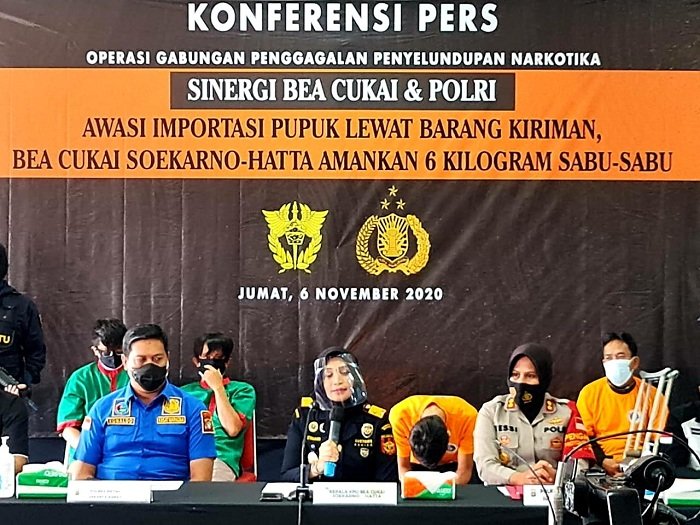 Petugas Bea Cukai Bandara Internasional Soekarno-Hatta bersama instansi terkait berhasil menggagalkan penyelundupan 6.055 gram atau 6 kilogram narkotika jenis sabu dengan cara diselipkan dalam kemasan pupuk dan kemudian dikirim melalui perusahaan jasa titipan ditengah pandemi Covid-19 pada Rabu (21/10/2020) lalu.