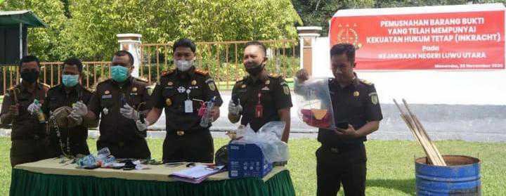 Kejaksaan Negeri Luwu Utara (Lutra), Sulawesi Selatan (Sulsel) melakukan pemusnahan barang bukti narkotika, yang telah berkekuatan hukum tetap. Jaksa dalam hal ini menjalankan isi putusan pengadilan.