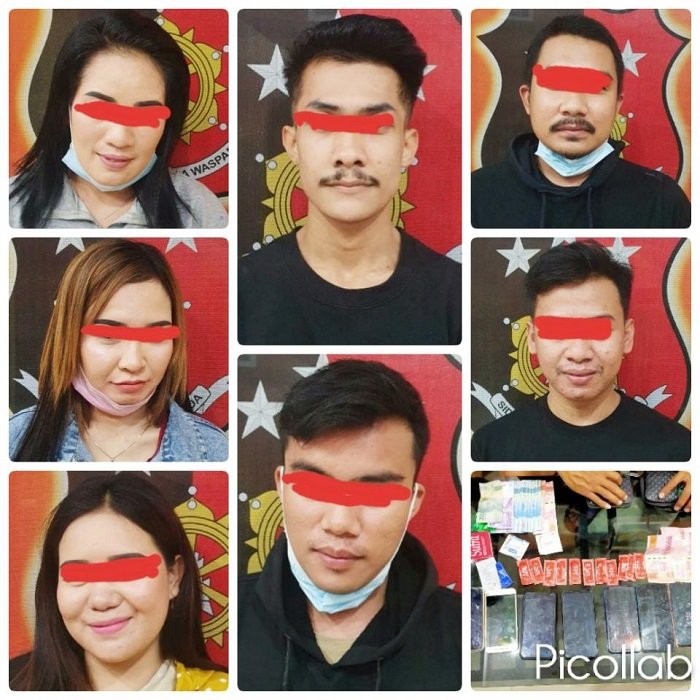 Selain mengamankan para terduga pelaku, aparat kepolisian juga menyita sejumlah barang bukti diantaranya 10 buah HP berbagai merek, 1 buah power bank, 29 sachet kondom berbagai merek, 3 botol pelumas (Lubrican), 5 buah dompet, uang tunai Rp 1.632.000,-, dan 1 unit mobil Honda Brio warna hitam bernomor polisi DD 1533 DJ.