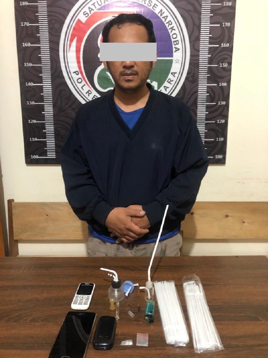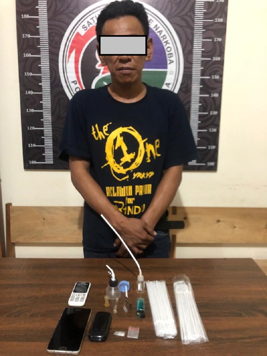 Selain itu, ada 2 sachet plastik bening yang berisikan kristal bening yang diduga narkoba sabu, 1 buah tutup botol bekas air mineral yang sudah berlobang dua, 2 buah bong lengkap yang dijadikan alat komsumsi sabu, 1buah kepala dot yang dijadikan sebagai alat konsumsi sabu.