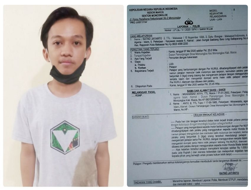 Lelaki Ratno Jayanto (26), karyawan swasta beralamat Jl Sungai Saddang Baru Lrg Ballaparang No.4 Kecamatan Rappocini, Kota Makassar, dirampok oleh 3 (tiga) pria tak dikenal di tengah jalan pada Kamis (07/05/2020) malam sekitar pukul 23.00 Wita.