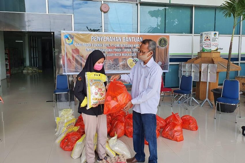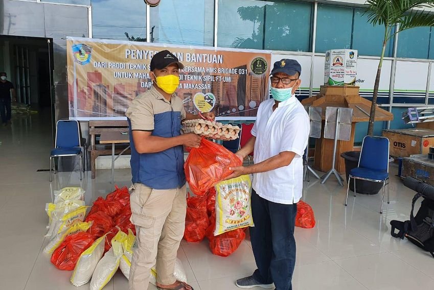 Program Studi (Prodi) Sipil Fakultas Teknik Universitas Muslim Indonesia (FT-UMI) bersama Tim Brigade 031 Himpunan Mahasiswa Sipil (HMS) Peduli Covid-19, mengadakan kegiatan pembagian 60 paket bahan pokok, dengan sasaran, mahasiswa Prodi Sipil yang masih 'Home Stay' dan panti asuhan di Kota Makassar, sebagai bentuk kepedulian kepada masyarakat yang terdampak Covid-19.