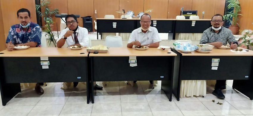 Pegawai LLDIKTI Wilayah IX Sulawesi dan Gorontalo, hari kedua masuk kantor di masa pandemi Corona, Selasa (09/06/2020) menggelar acara Halal bi Halal di Aula Ridwan Saleh Mattayang, dengan menu khas Timur Tengah, kirimam dari keluarga besar almarhum Rektor UMI Makassar di masanya, Prof. Dr. H. Abdurrahman A. Basalamah MSi.