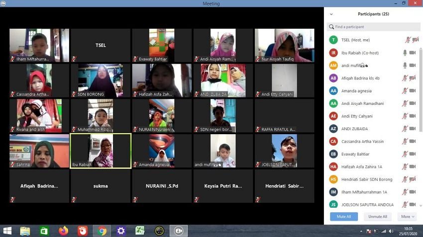 Kepala SD Negeri Borong, Dra Hj Hendriati Sabir, M.Pd, saat peringatan HAN virtual dengan menggunakan aplikasi CloudX itu, mengatakan, dirinya ingin anak-anak tetap mendapatkan perhatian, dengan cara mereka diberi ruang untuk berekspresi dan menampilkan kreativitasnya.