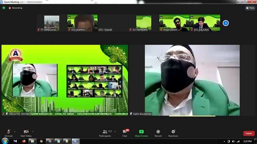 Seluruh alumni Fakultas Teknik Universitas Muslim Indonesia (FT-UMI) harus mampu berkiprah secara maksimal dalam masyarakat, dengan menerapkan berbagai ilmu pengetahuan dan keterampilan yang dimiliki. Hal tersebut disampaikan Dekan FT-UMI, Dr. Ir. H. Mukhtar Thahir Syarkawi, MT, dalam sambutannya pada kegiatan yudisium periode ke II tahun 2020, terhadap 212 orang alumni, yang dilaksanakan offline di ruang sidang FT-UMI dan secara online via aplikasi zoom, Kamis (22/10/2020).