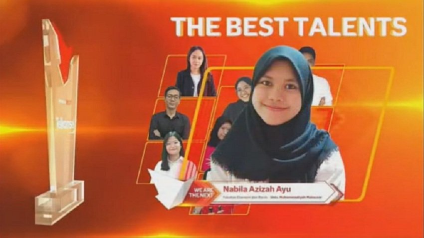 Nabila Azizah Ayu mahasiswa Prodi Manajemen Fakultas Ekonomi dan Bisnis Universitas Muhammadiyah (Unismuh) Makassar menjadi salah satu Pemenang Program IndonesiaNEXT Season 5 tingkat Nasional.