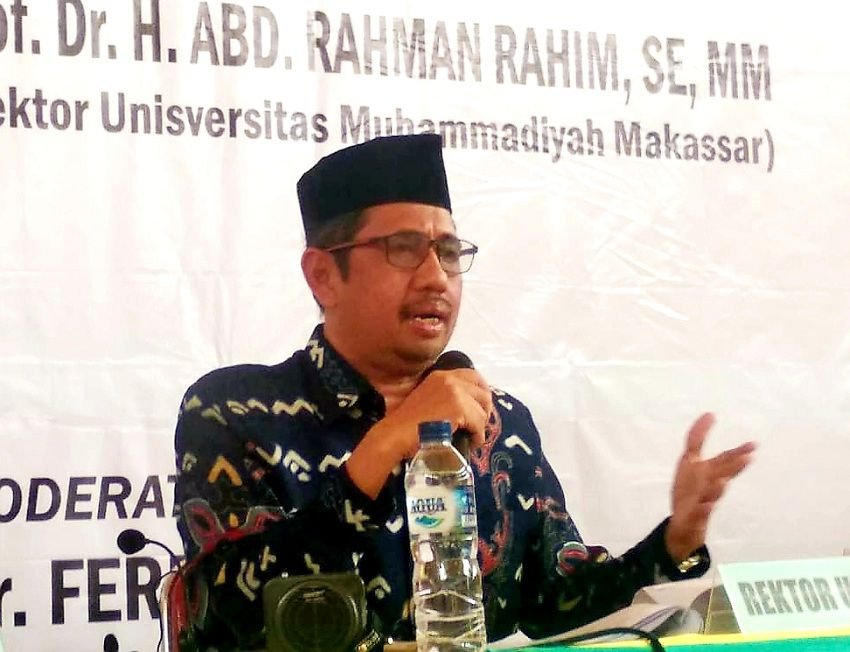 Rektor Unismuh Makasaar, Prof Dr H Abd Rahman Rahim SE MM, salah seorang nara sumber pada seminar nasional yang dilaksanakan Lembaga Pengembangan Pesantren Muhammadiyah (LP2M) Wilayah Sulsel, di Gedung SKB Getengan Tator Sabtu (21/12/2019).