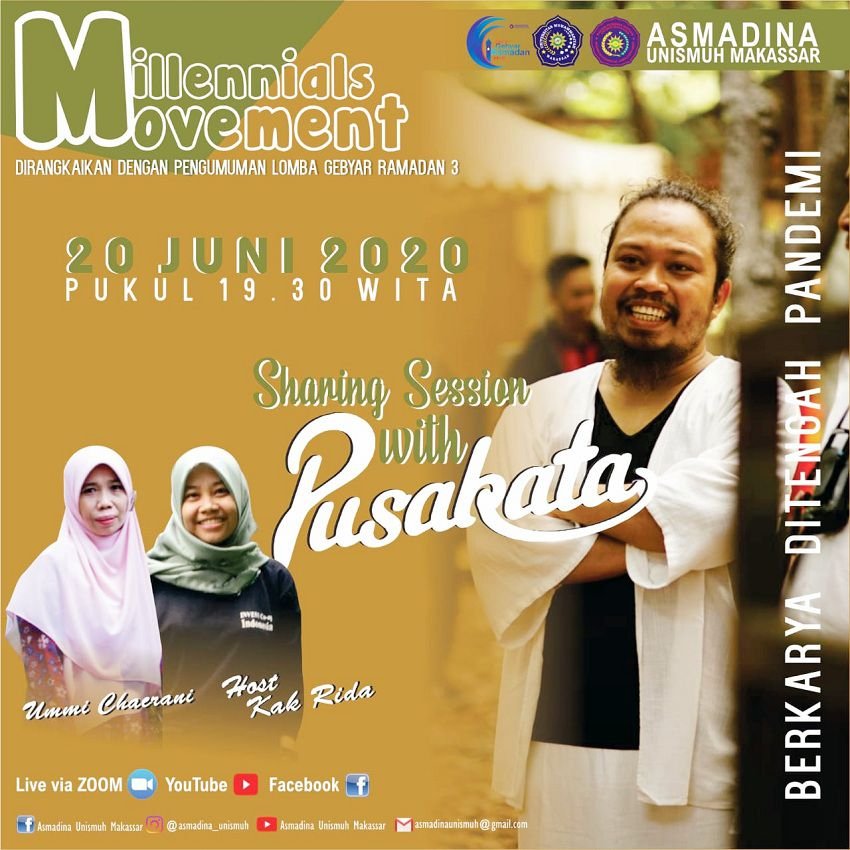 Asmadina Unismuh Makassar akan menggelar Millenials Movement yang dirangkaikan dengan pengumuman lomba Gebyar Ramadan 3, pada Sabtu 20 Juni 2020 malam.