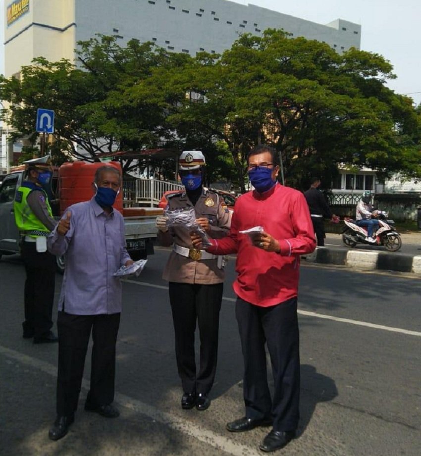Civitas Akademika Fakultas Agama Islam (FAI) Unismuh Makassar, Sabtu (18/4/2020) pagi, membagi 1000 masker di jalan poros depan kampus, Jl. Sultan Alauddin Tala Salapang, Makassar.