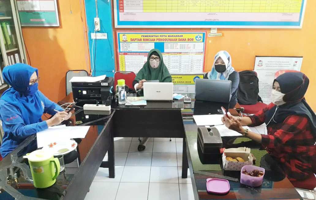 Seperti yang dilakukan guru-guru SD Negeri Borong, Selasa, (21/04/2020). Dalam ruang guru yang biasa difungsikan untuk rapat itu, duduk berhadapan dalam posisi saling menjaga jarak, Kepala SD Negeri Borong Dra Hj Hendriati Sabir, M.Pd, bersama Rosmiaty, S.Pd, Evawaty Bahtiar, S.Pd dan Andi Etty Cahyani, S.Pd.