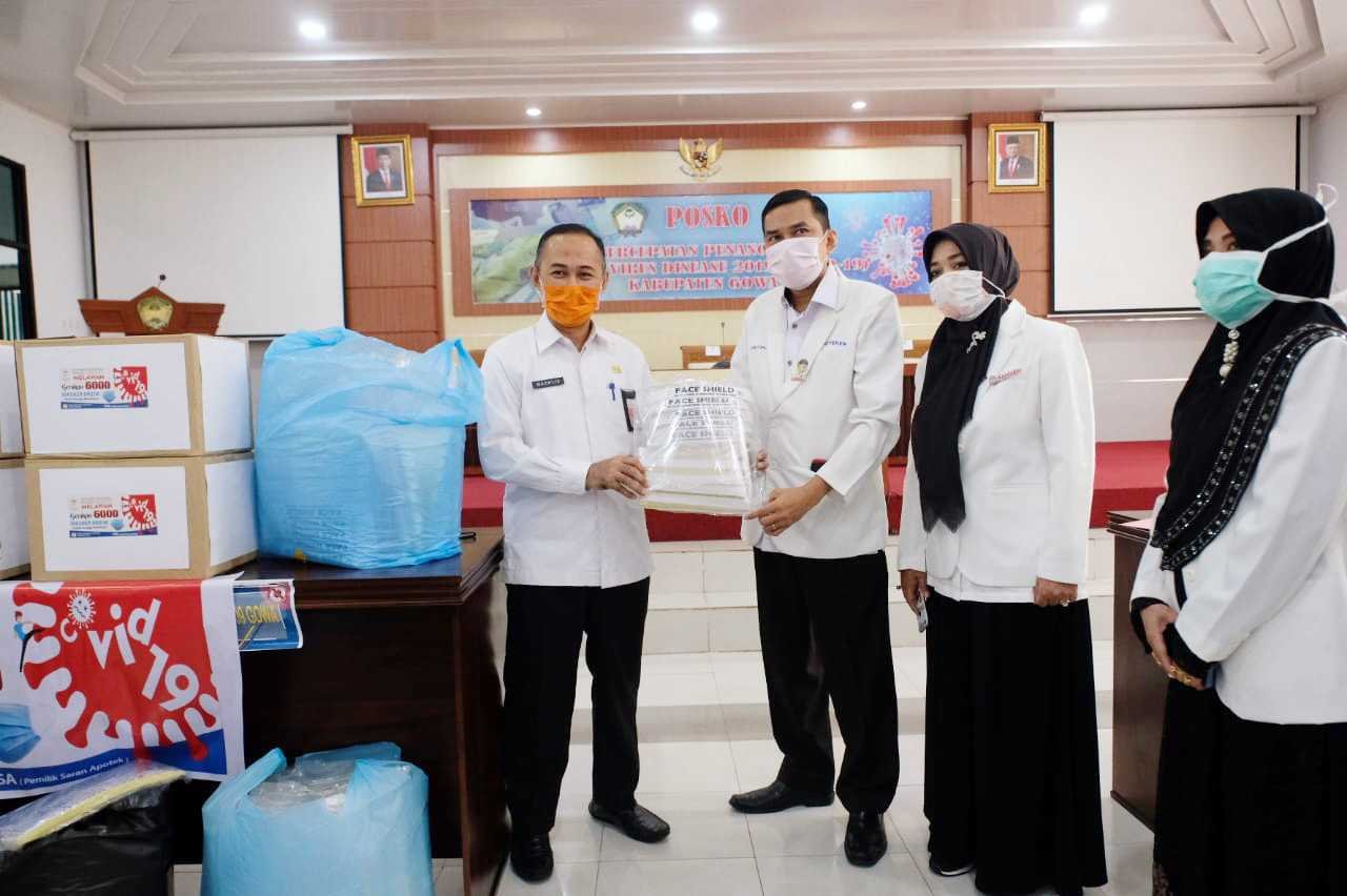 Ikatan Apoteker Indonesia (IAI) Cabang Gowa menyerahkan sejumlah bantuan Alat Pelindung Diri (APD) kepada Pemerintah Kabupaten (Pemkab) Gowa, Rabu (22/04/2020).