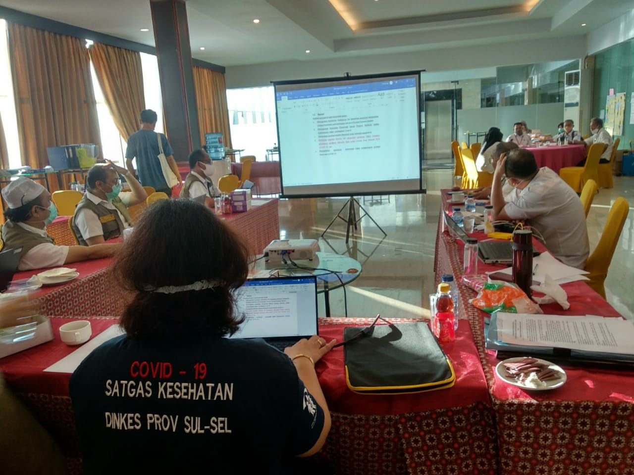 Upaya menekan penyebaran Virus Corona,Tim Konsultan Gugus Tugas Percepatan Penanganan Covid-19 Provinsi Sulawesi Selatan bersama Dinas Kesehatan menyusun Pedoman Pencegahan Covid-19 Berbasis Masyarakat.