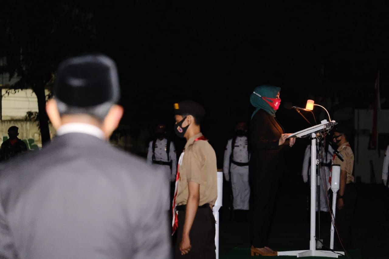 Kegelapan malam yang dihiasi lampu obor tersebut berlangsung hening. Apel tersebut diikuti pasukan baik dari TNI, Polri maupun dari ASN lingkup Pemprov Sulsel dan Kota Makassar.