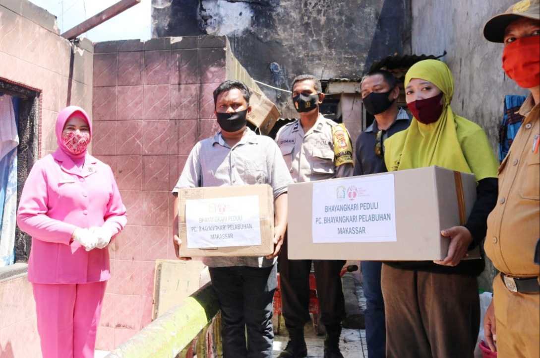 Sebagai wujud peduli sesama dan bentuk perhatian atas musibah kebakaran yang dialami masyarakat di Kelurahan Cambaya, Kecamatan Ujung Tanah, Kota Makassar, Bhayangkari Polres Pelabuhan Makassar memberikan bantuan kepada para korban kebakaran, Selasa (18/08/2020).
