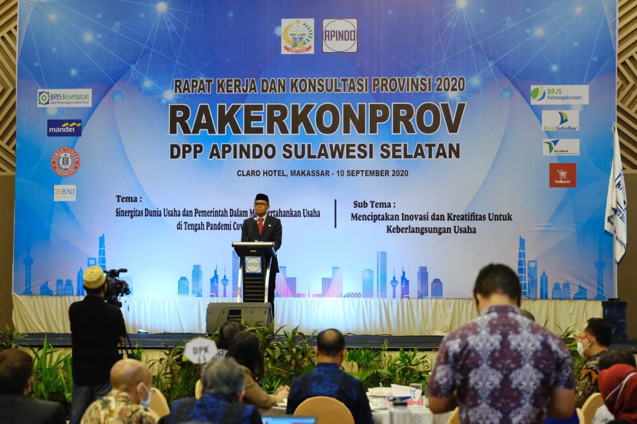 Dalam sambutannya di acara Rapat Kerja dan Konsultasi Provinsi 2020 Dewan Pimpinan Provinsi (DPP Apindo) Sulsel di Claro Makassar, Kamis (10/9/2020), Nurdin Abdullah mengatakan, Covid-19 harus dihadapi bersama.