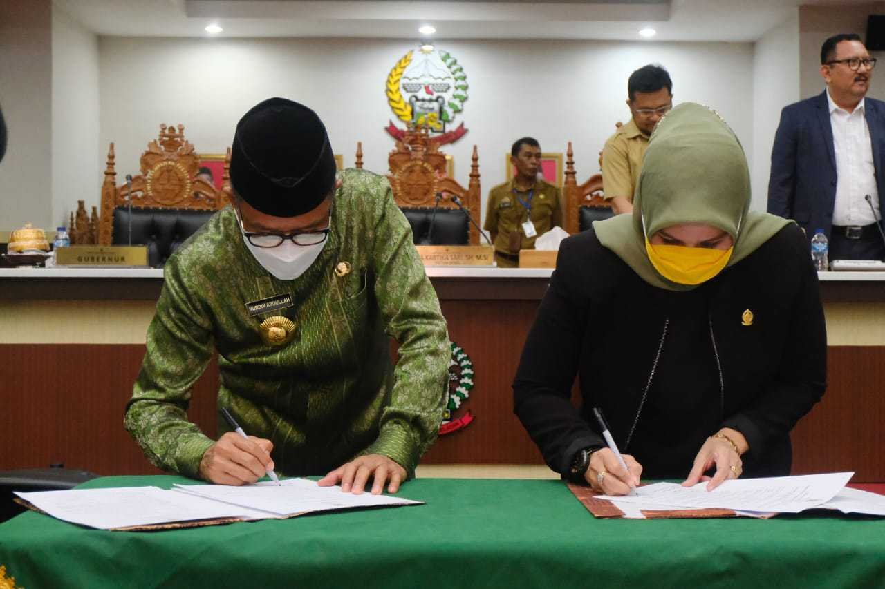 Gubernur Sulawesi Selatan, Prof. HM Nurdin Abdullah melakukan pendandatanganan bersama DPRD Sulsel Terkait Nota Kesepakatan terhadap Rancangan Awal Perubahan Rencana Pembangunan Jangka Menengah Daerah (RPJMD) Provinsi Sulawesi Selatan Tahun 2018-2023 di Kantor DPRD Sulsel, Senin (14/9/2020).