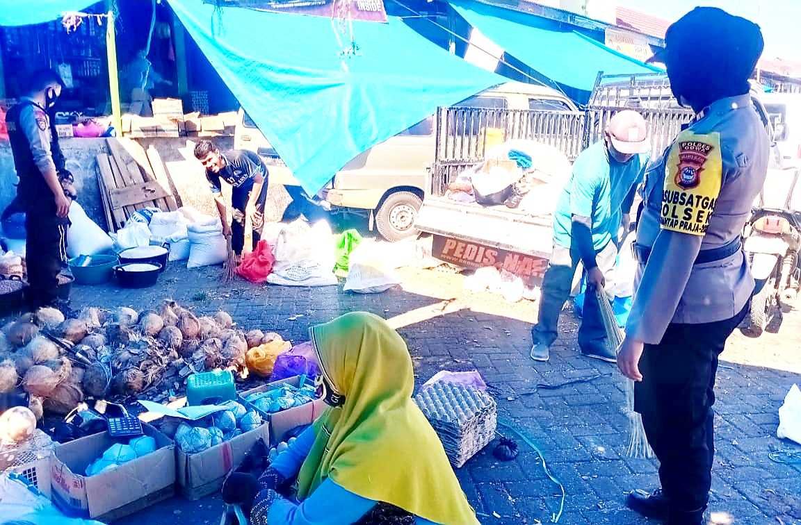 Didampingi oleh anggotanya, Kapolsek terus melakukan pemeriksaan bagi warga yang sedang berbelanja untuk memastikan memakai masker sambil memberikan teguran apabila menemui warga tidak memakai masker dan jaga jarak.