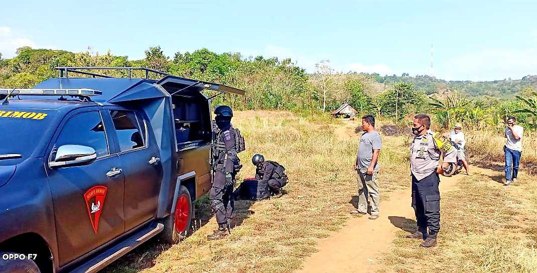 Selanjutnya pada pukul 13.55 Wita, Unit Jibom Polda Sulsel yang dipimpin Ipda Munir tiba di lokasi langsung melakukan penanganan terhadap 1 buah mortir dan 2 proyektil kaliber besar.