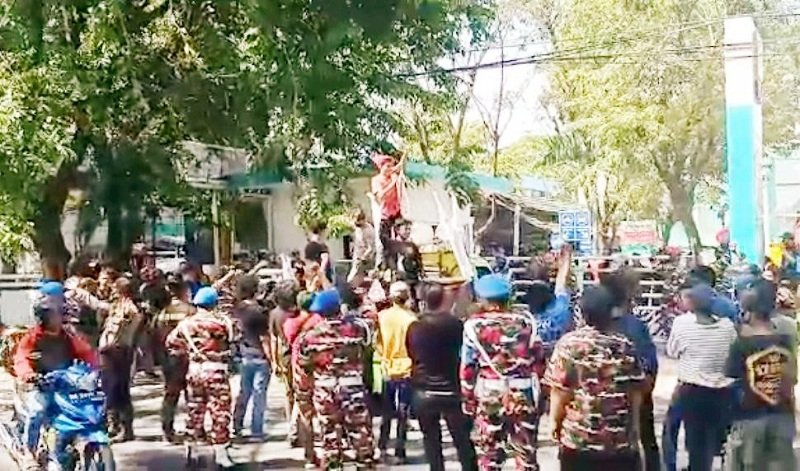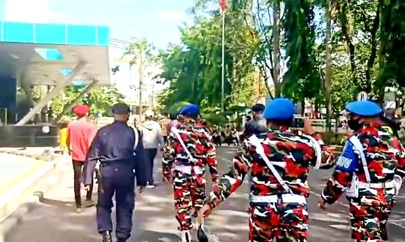 Ratusan massa dari Gerakan Mahasiswa Laskar Merah Putih (Gema LMP) Sulawesi Selatan (Sulsel) turun menggelar aksi unjuk rasa untuk kedua kalinya di Kantor PLN Unit Induk Wilayah (UIW) Sulselrabar, Jln Hertasning Raya, Makassar, Jumat (18/09/2020) siang.