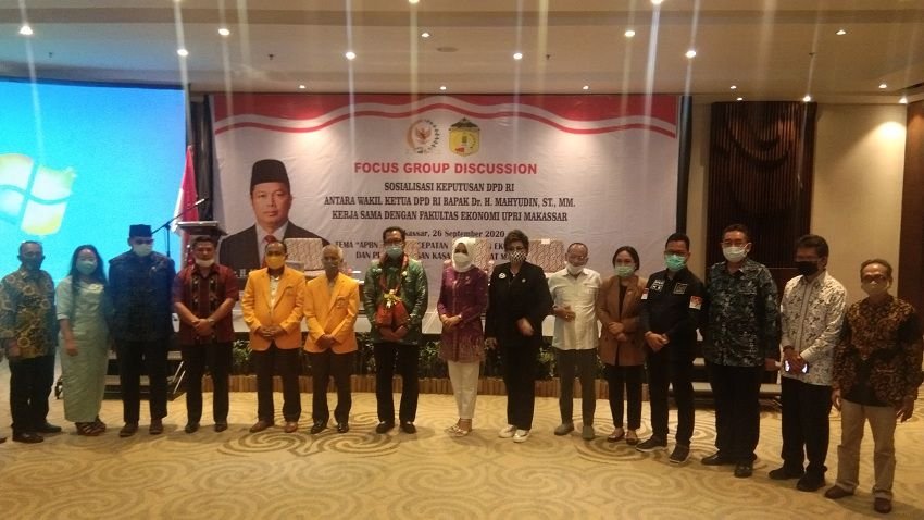 Pernyataan tersebut dipaparkan, Wakil Ketua DPD RI, Dr. H. Mahyudin, ST, MM, pada kegiatan Focus Group Discussion, Sosialisasi Keputusan DPD RI, antara Wakil Ketua DPD RI, Kerjasama Dengan Universitas Perjuangan Republik Indonesia (UPRI) Makassar, di Four Points by Seraton, Sabtu (26/09/2020) siang tadi.