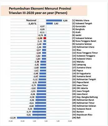Sulsel secara Y-on-Y (year on year) pertumbuhan triwulan III terjadi kontraksi -1,08 persen, dibandingkan angka nasional untuk triwulan III-2020 sebesar -3,49 persen. Jika melihat angka pertumbuhan Sulawesi Selatan pada triwulan II-2020 sebesar -3,86 persen dengan engan pertumbuhan ekonomi triwulan III sebesar -1,08 persen. Maka terjadi pertumbuhan positif.