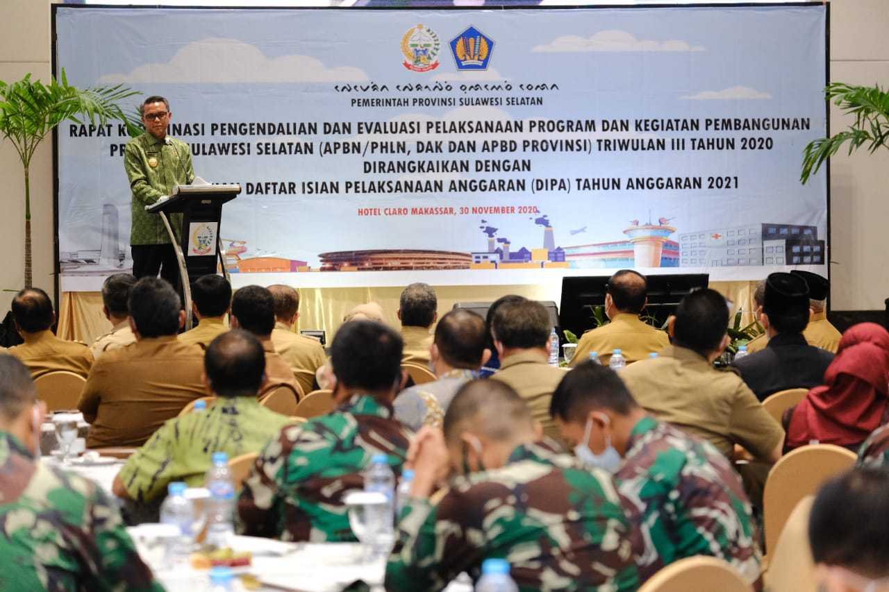 "Kita targetkan realisasi anggaran 25 persen di triwulan pertama tahun 2021. Pemerintah pusat sudah menetapkan pertumbuhan ekonomi nasional 5,05 persen, ini akan ditentukan oleh belanja daerah," jelas Nurdin Abdullah, setelah membuka Rakor Pengendalian dan Evaluasi Pelaksanaan Program dan Kegiatan Pembangunan Pemprov Sulsel (APBN/PHLN, dan APBD Pemprov Sulsel Triwulan III 2020) dan Penyerahan DIPA Tahun 2021, di Hotel Claro Makassar, Senin (30/11/2020).