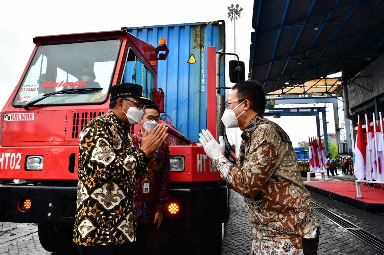 Gubernur Sulawesi Selatan (Sulsel), Prof HM Nurdin Abdullah, melepas ekspor komoditas dari berbagai daerah di Sulsel ke 15 negara tujuan, di Pelindo IV Makassar, Jumat (4/12/2020).
