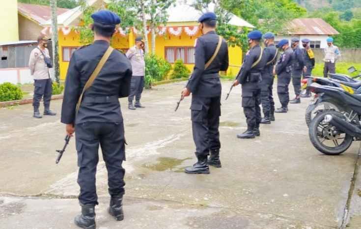 Kedatangan personel BKO Brimob Polda Sulsel sebanyak 10 orang disambut langsung oleh Kapolsek Bungaya AKP Misbahuddin, S.Sos.