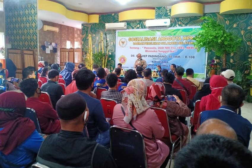 Seperti biasa, Ajiep Padindang menyampaikan, Sosialisasi Empat Pilar MPR RI adalah program MPR RI untuk memasyarakatkan Pancasila sebagai Dasar Negara, UUD NRI Tahun 1945 sebagai Konstitusi Negara, NKRI sebagai Bentuk Negara, dan Bhinneka Tunggal Ika sebagai Semboyan Negara.