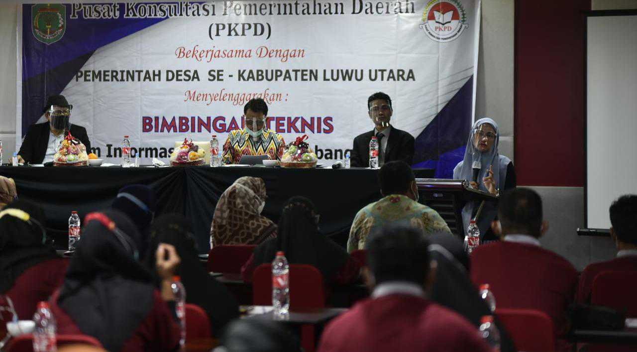 Bupati Luwu Utara (Lutra) Sulawesi Selatan (Sulsel) Indah Putri Indriani membuka langsung acara bimbingan teknis (bimtek) Aplikasi Sistem Informasi (ASI) RAB Pembangunan Desa yang diikuti seluruh Pemerintah Desa se-Kabupaten Lutra.