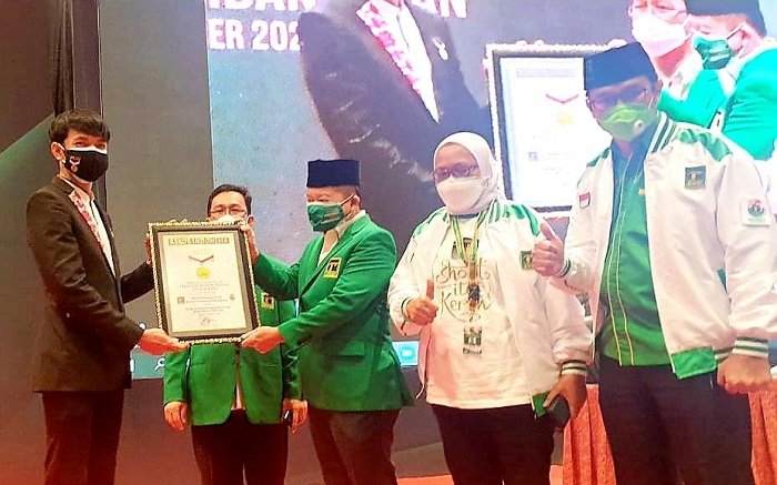 Rekor Indonesia MURI memberikan penghargaan kepada DPP PPP atas rekor Muktamar Partai Politik secara daring dengan peserta terbanyak. (*)