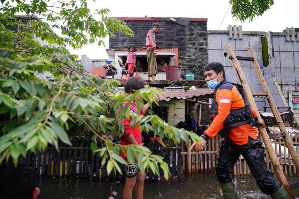 "Kami turun karena ada ibu dan balita kembarnya dari laporan tidak mau dievakuasi. Saya langsung turun karena balita itu berisiko jika air naik lagi elevasinya. Lama kami bernegosiasi dan merayu anaknya. Alhamdulillah mereka mau. Anak rentan dan beresiko bagi keselamatan nyawa mereka sekeluarga jika air terus naik," ungkap Andi Sudirman saat mengevakuasi salah satu korban terdampak banjir.