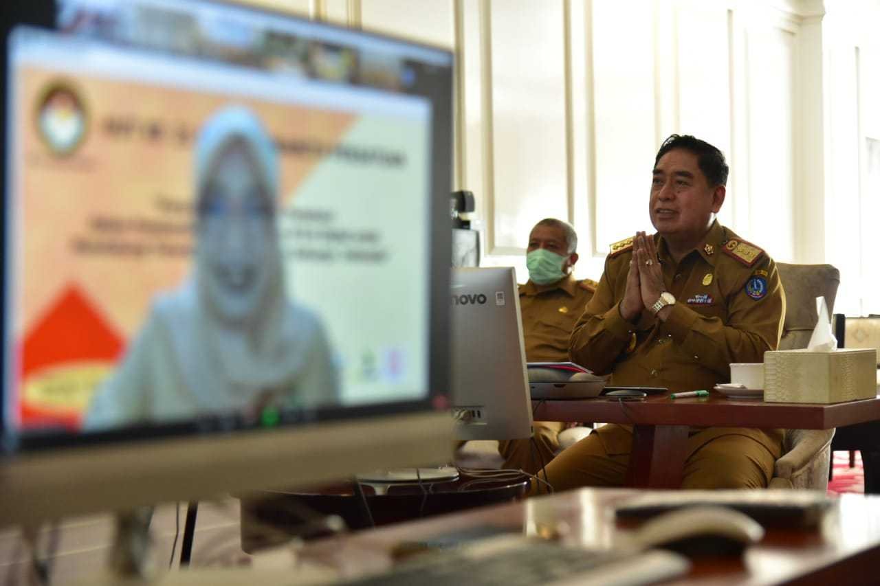 Sekretaris Daerah Provinsi (Sekdaprov) Abdul Hayat Gani menghadiri hari jadi Darma Wanita Persatuan yang ke-21 yang dilakukan secara virtual zoom meeting di Baruga Lounge KantoR Gubernur Sulsel, Senin (21/12/2020).