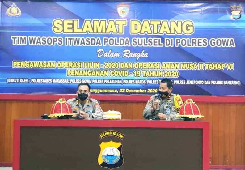Dalam rangka melakukan pengawasan terhadap Operasi Lilin dan Operasi Aman Nusa II Tahap VI Penanganan Covid-19 tahun 2020, Tim Wasops Itwasda Polda Sulsel kumpulkan Kabag Ops dan Kasat Lantas di tujuh Polres jajaran Polda Sulsel.